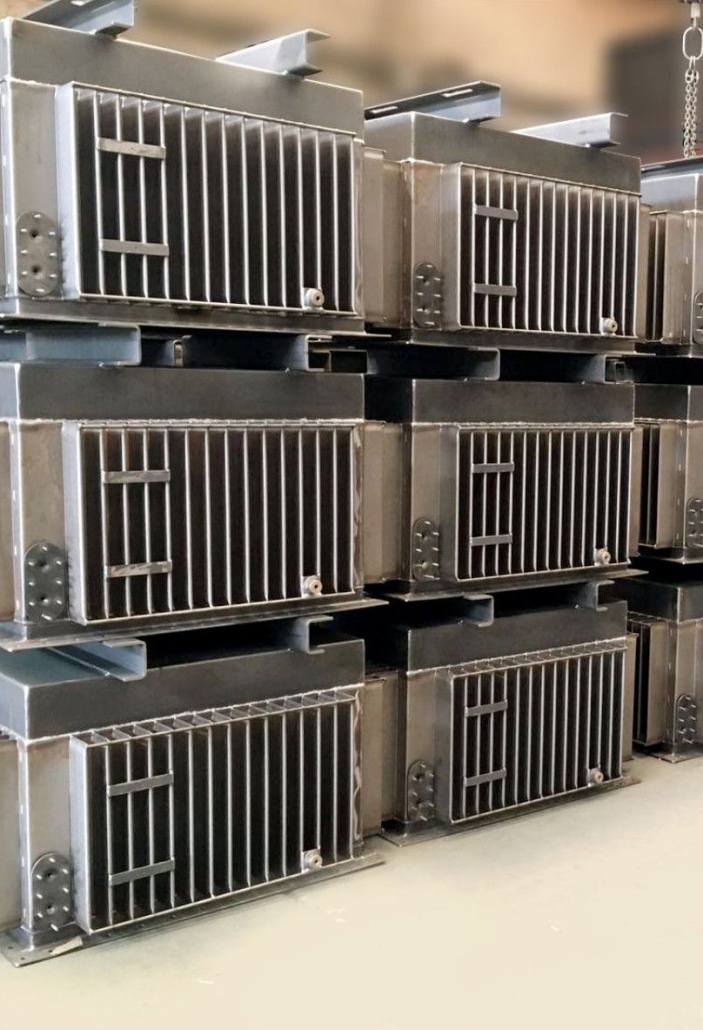 The manufacturing range is from 50KVA to 12MVA. We can provide hermetically sealed tanks or expansion tanks, our corrugated walls design will change in accordance to the type of transformer. Hermetic tanks infact needs elastic corrugated wall design, while expansion tanks requires more rigid design with spot-welded corrugated walls and a conservator mounted on its top. Conservators, cable boxes, covers, accessories and reinforcements can be manufactured with the tanks following customer design.